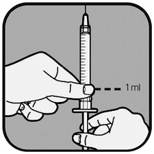 Helsepersonell vil vise deg hvilken markering du skal bruke dersom du skal injisere mindre enn 1 ml. Bruk alltid markeringen som tilsvarer din dose. Spør helsepersonell før bruk hvis du er usikker.
