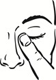 3. Bøy hodet litt bakover og hold flasketuppen loddrett over øyet. Trekk nedre øyelokk litt ned med pekefingeren på den andre hånden. Lommen som dannes kalles nedre konjunktivalsekk. Unngå at flasketuppen berører fingrene eller øynene. For å dryppe en dråpe i øyets nedre konjunktivalsekk, press raskt og hardt på flasken. På grunn av automatisk dosering frisettes nøyaktig én dråpe ved hvert pump. |