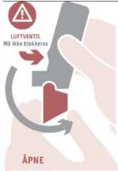 Oppbevares ved høyst 25ºC. Hold munnstykkedekselet lukket etter fjerning av folieinnpakningen.