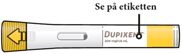 Dette er en ferdigfylt penn til engangsbruk. Den inneholder 200 mg Dupixent for injeksjon under huden (subkutan injeksjon). Du må ikke sette en injeksjon på deg selv eller andre med mindre du har fått opplæring fra helsepersonell. Hos ungdom som er 12 år eller eldre, anbefales det at Dupixent gis av eller under oppsyn av en voksen. Hos barn under 12 år bør Dupixent gis av en omsorgsperson.
