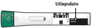 Ikke bruk den ferdigfylte pennen hvis den grønne hetten mangler eller ikke er sikkert festet.