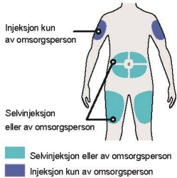 Skift injeksjonssted for hver injeksjon.