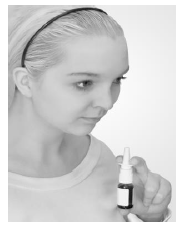 4. Hold flasken rett opp og ned og sett spraytuppen forsiktig inn i et nesebor.