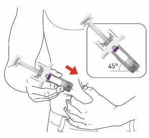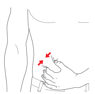Klem forsiktig sammen en hudfold på injeksjonsstedet (lår eller mage, unntatt 5 cm (2 tommer) rundt navlen, eller på utsiden av overarmen hvis en omsorgsperson setter injeksjonen).