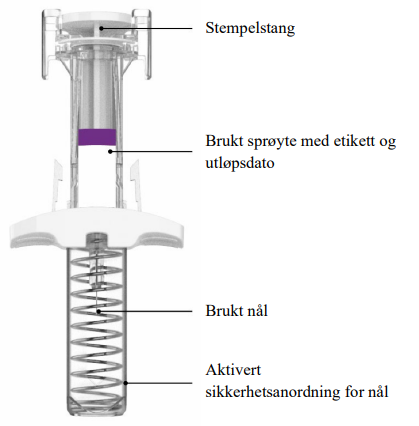 For mer informasjon om sikker kasting av skarpe gjenstander, spør helsepersonell om tilgjengelige alternativer i ditt område.