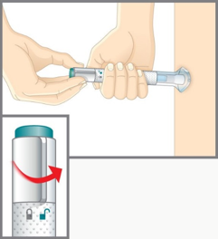 Når du er klar til å injisere, skru av hetten og kast den.