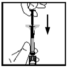 Mens du holder glassrøret av sprøyten med én hånd og hetteglassadapteren (ikke hetteglasset) med den andre, fest sprøyten til hetteglassadapteren ved å føre tuppen inn i åpningen og vri med klokken til den sitter fast (se figur 7).