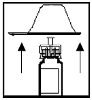 Plassér hetteglassadapteren på toppen av Enbrel-hetteglasset mens den fremdeles er innpakket i plastikk slik at hetteglassadapteren er plassert i midten innenfor den opphevede sirkelen på toppen av hetteglassproppen (se figur 2).