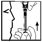 Mens du holder sprøyten oppreist, fjernes eventuelle luftbobler ved forsiktig å presse inn stempelet inntil all luft er fjernet (se figur 16).