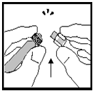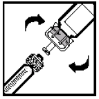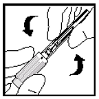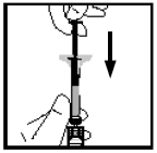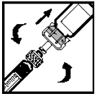 Mens du holder glassrøret av sprøyten (ikke den hvite ringen) med en hånd og hetteglassadapteren (ikke hetteglasset) med den andre, fest sprøyten til hetteglassadapteren ved å føre tuppen inn i åpningen og vri med klokken til den sitter fast (se figur 7).