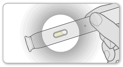 Trykk den grønne knappen helt inn til du hører et “klikk”. Klikket betyr at injeksjonen starter.