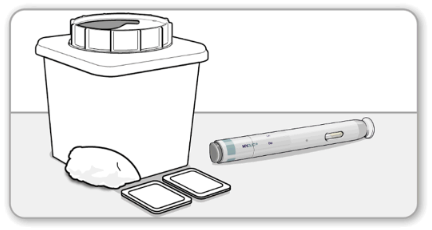 Samle følgende elementer til hver injeksjon på en ren, godt belyst arbeidsflate:
