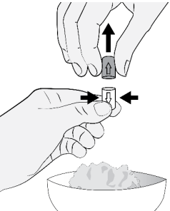 Pass på at barnet ikke tygger granulatet for å unngå at smaken endres.