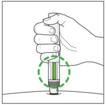 Erelzi ferdigfylt penn vist med hetten av. IKKE fjern hetten før du er klar til å injisere.