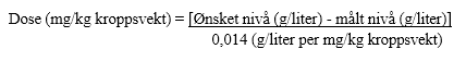 Ved kirurgisk prosedyre eller behandling av en blødningsepisode skal dosen beregnes som følger: