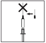 1. Ta hetten av den ferdigfylte sprøyten, og fest rekonstitueringsnålen (lang nål) til sprøyten. Sett sprøyten forsiktig på den rene flaten og unngå å berøre nålen.