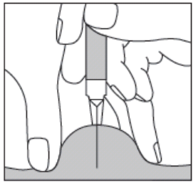 Trykk stempelet helt ned med langsom, jevn hastighet for å tilføre riktig dose. Hold hudfolden klemt mens du injiserer. Deretter slipper du opp hudfolden og trekker ut nålen.
