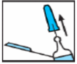 Sett kanylebeskyttelsen av plast mot en hard, stødig overflate, og sving sprøytesylinderen opp mot nålen med én hånd slik at nålen presses inn i kanylebeskyttelsen, der den låses på plass. Fortsett med å bøye nålen til sprøyten overskrider 45 graders vinkel med den flate overflaten, slik at den blir permanent ubrukelig.