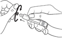 Beskyttelseshetten fjernes fra den ferdigfylte sprøyten umiddelbart før bruk.
