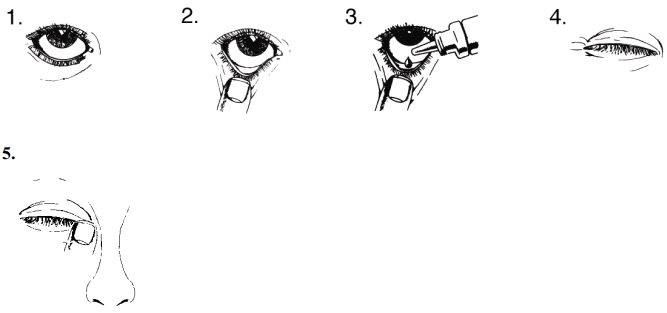 For å unngå infeksjon må du passe på at flaskespissen ikke kommer i berøring med øyet eller andre ting. Sett på hetten og lukk flasken med én gang etter bruk.