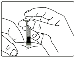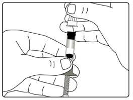 Motstanden kan skyldes at nålen ikke er festet riktig på gummiproppen på toppen av Genotropin MiniQuick-sprøyten. For å rette opp dette, må du sette den ytre beskyttelseshetten (ugjennomsiktig, hvit) på nålen og skru ”mot klokken” for å fjerne nålen. Hold MiniQuick-sprøyten loddrett slik at enden der nålen skal festes peker oppover. Plassér nålen vinkelrett ned på gummiproppen på toppen av sprøyten. Skru nålen fast på sprøyten.