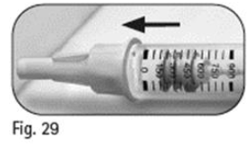6.3 Fortsett å skyve den tildekkede kanylen mot en fast overflate til du hører et klikk («click») (figur 29).