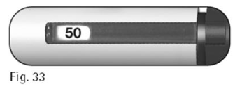 Doseringsvinduet vil vise den manglende mengden som du må injisere med en ny penn. I eksemplet som vises, er den manglende mengden «50» IE (figur 33).