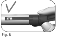5.2 Plasser tommelen i midten av doseinnstillingsknappen. Trykk doseinnstillingsknappen sakte helt inn og hold den inne for å fullføre hele injeksjon (figur 25).