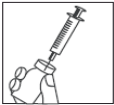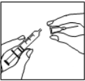 Trykk den korte kanylen bestemt ned på sprøytesylinderen, og vri den litt for å sikre at den er skikkelig skrudd på og tett forseglet.