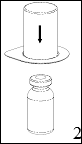Varm væsken til romtemperatur. Fjern plasthetten fra både hetteglasset med Haemate og hetteglasset med væske. Vask toppen av gummiproppene med antiseptisk oppløsning og la dem tørke før Mix2Vial-pakningen åpnes.