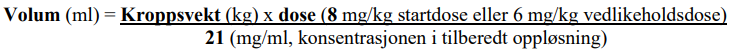 Det beregnede antall ml oppløsning trekkes opp av hetteglasset ved bruk av steril kanyle og sprøyte og tilsettes en polyvinylklorid-, polyetylen- eller polypropylen-infusjonspose med 250 ml natriumklorid 9 mg/ml (0,9 %) oppløsning. Oppløsninger som inneholder glukose, skal ikke brukes. Snu infusjonsposen forsiktig, så innholdet blandes uten skumdannelse. Før bruk skal parenterale oppløsninger alltid inspiseres visuelt for partikler og misfarging.