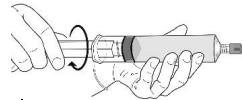 1. Fest sprøytestempelet til gummiproppen i sprøyten ved å skru stempelet med klokka til det stopper.