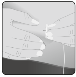 Ta tak i huden mellom 2 fingre og før nålen inn i det subkutane vevet.
