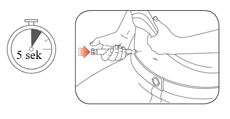 Fortsett å holde doseringsknappen inne, og tell sakte til 5 før kanylen trekkes ut.