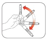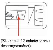 Vri doseringsknappen for å velge antallet enheter du skal injisere. Doseindikatoren skal være på linje med dosen som skal injiseres.