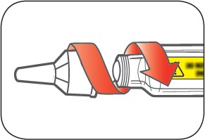 Doseringsstempel: Mørk grå med rød ring i enden.