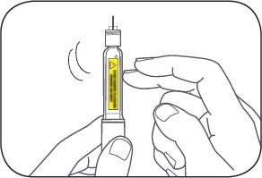 Benytt en ny kanyle for hver injeksjon. Fjern luftbobler før hver injeksjon. Du kan se omtrent hvor mye Humalog som er igjen i pennen ved å holde KwikPen med kanylen pekende rett opp.