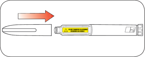 Så snart injeksjonen er gjennomført skrus kanylen av ved hjelp av den ytre beskyttelseshetten. Insulinet vil holde seg sterilt og ikke lekke når kanylen blir fjernet fra pennen. Det forhindrer også at luftbobler kommer inn i kanylen og tetter den. Du må ikke dele kanyle eller penn med andre. Sett på pennehetten.