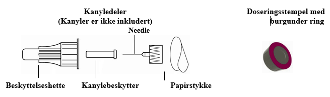 Skift kanyle før hver injeksjon. (Kanyler er ikke inkludert i pakningen).