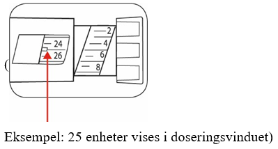 Vri doseringsknappen for å velge antallet enheter du skal injisere. Doseindikatoren skal være på linje med dosen som skal injiseres.