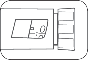 Fortsett å holde pennen med kanylen pekende oppover. Press doseringsstempelet inn inntil det stopper og ”0” vises i doseringsvinduet. Hold doseringsstempelet inne og tell sakte til 5.