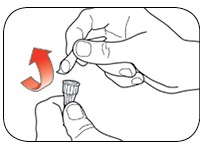 Skru av kanylen med beskyttelseshetten på og kast den som vist nedenfor (se Kassering av penner og kanyler).