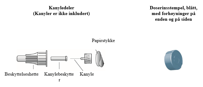 Skift kanyle før hver injeksjon. (Kanyler er ikke inkludert i pakningen).