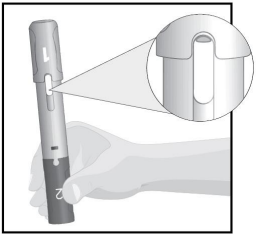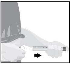 Snu den ferdigfylte pennen slik at den hvite pilen peker mot injeksjonsstedet.