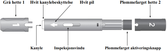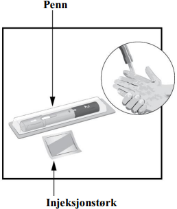 Den ferdigfylte pennen oppbevares i ytterpakningen for å beskytte mot lys.