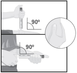 Plasser den hvite kanylebeskyttelsen med rett vinkel (90 grader) mot injeksjonsstedet.