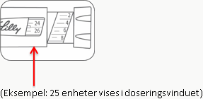 Vri doseringsstempelet for å velge antallet enheter du skal injisere. Doseindikatoren skal være på linje med dosen som skal injiseres.