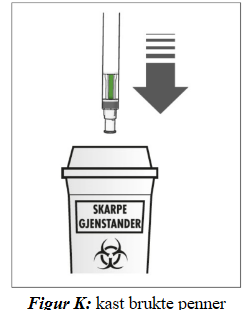 Oppbevares i kjøleskap (2-8ºC). Skal ikke fryses. Den ferdigfylte pennen oppbevares i ytterpakningen for å beskytte mot lys.