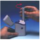 Trykk GlaxoPen ned i den tomme beholderen, og vri den mot venstre.
