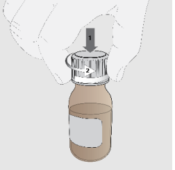 4. Plasser flasken på et flatt underlag og hold den godt. Trykk adapteren ned på flasketuten med den andre hånden ved hjelp av tommelen eller håndflaten.